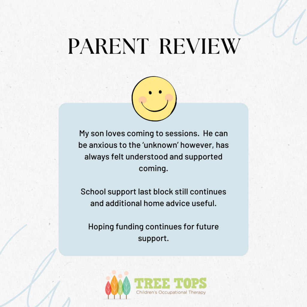 It is always great to hear how our Tree Toppers love coming to Tree Tops for their sessions. We make the sessions fun and tailored to their interests wherever possible. We think the OTs and OTAs have far too much fun in the sessions with our Tree Toppers!